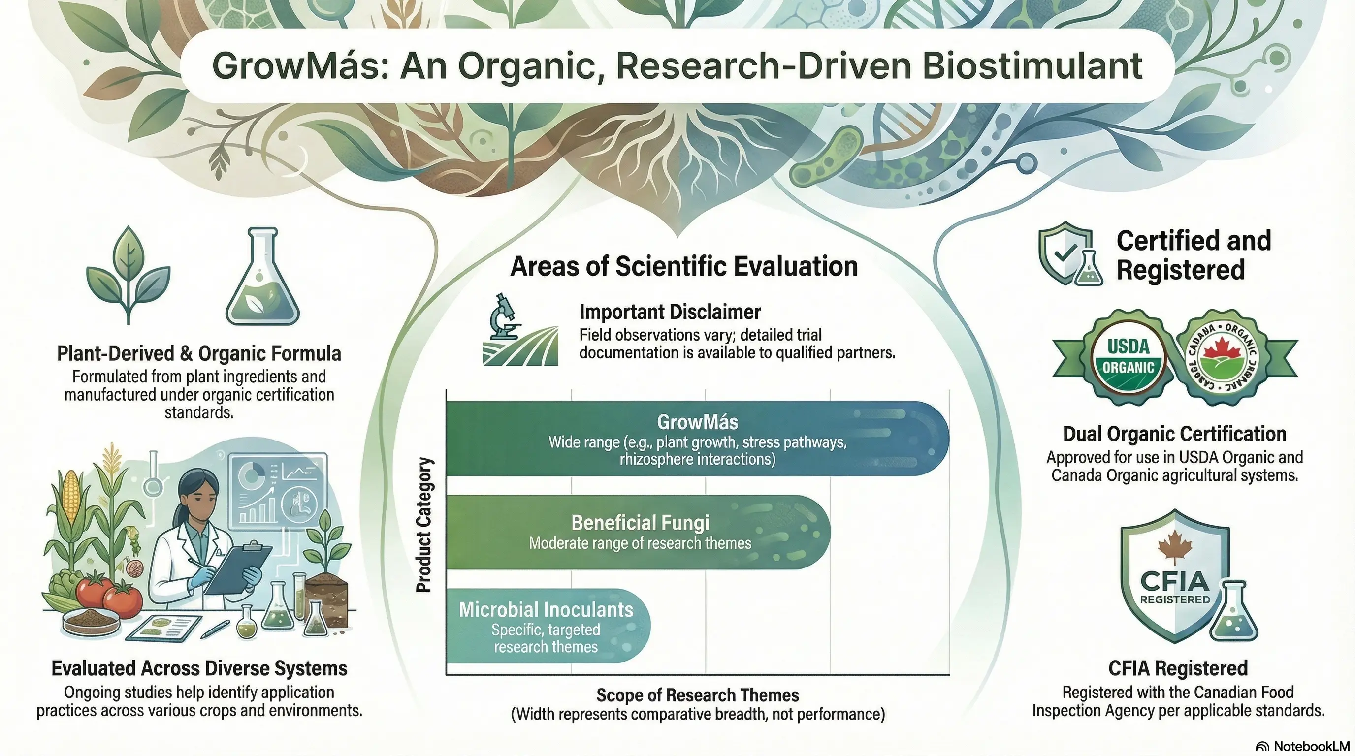 Formulado completamente con ingredientes naturales a base de plantas, certificado para mercados de América del Norte. Compatible con prácticas agrícolas convencionales y sostenibles, garantizando tranquilidad en cada aplicación.